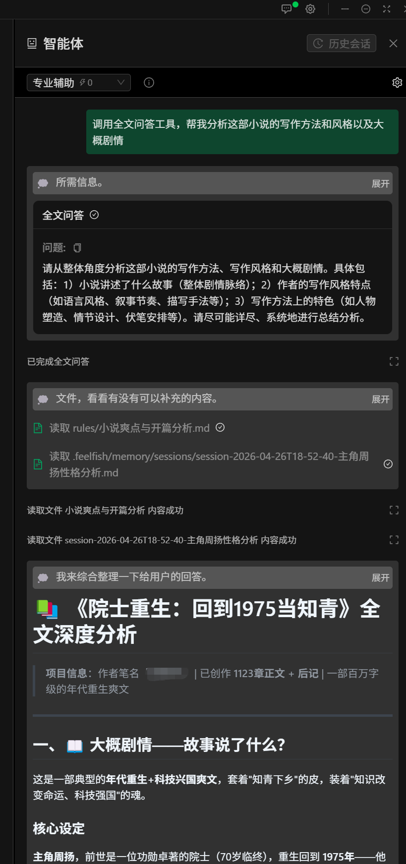 为了让智能体更好地利用这个能力,也为了帮助大家节约积分,FeelFish 全新推出了全文问答功能: