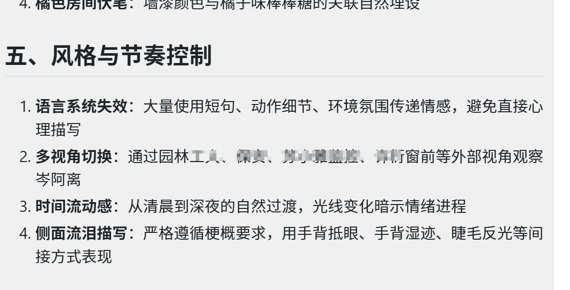 然后就是文笔风格,调用的是同样的创作技能,各位可以各自感受一下,更喜欢哪种风格。