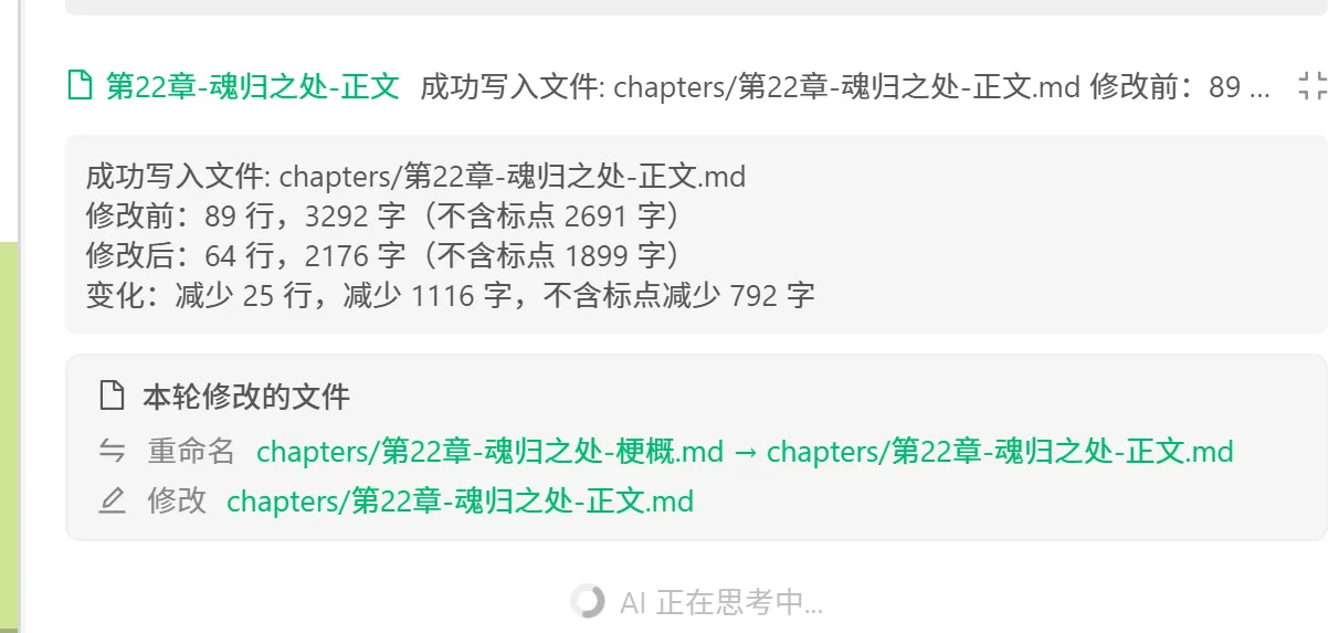 结果——再继续等待十五分钟后GEMINI开始书写正文,思考期间花费一个亿积分,直接更改文件名,选择覆盖梗概。